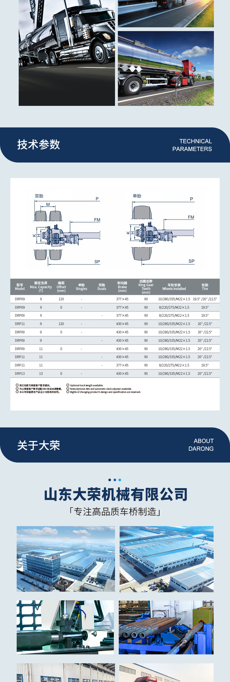 | DRP09 | · | 120 | 9 | 377*45 | 90 | 10/280/335/M22*1.5 | 19.5"/20/22.5 | |